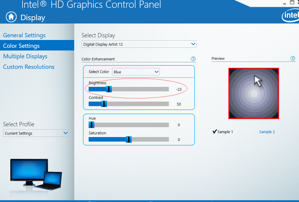 3.In Color Setting, set Select Display to Digital Display Artist 12
