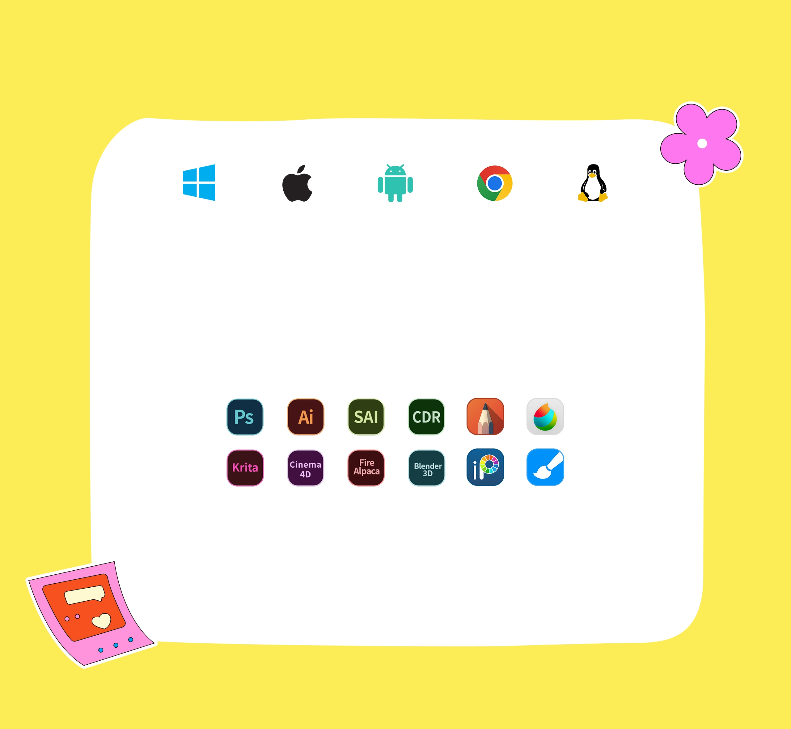 適用Adobe Photoshop、Illustrator、SAI、CDR、Clip Studio Paint、GIMP、Krita、MediBang、FireAlpaca、Toonboom、Maya和Blender 3D等主流繪畫設計軟體。