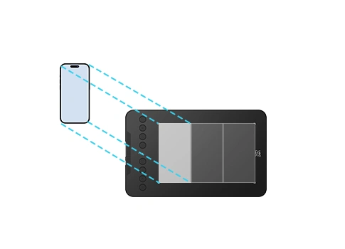 在你的安卓設備上下載XPPen Tools 應用程式*,能根據使用習慣,手動調節繪畫區域比例和位置,