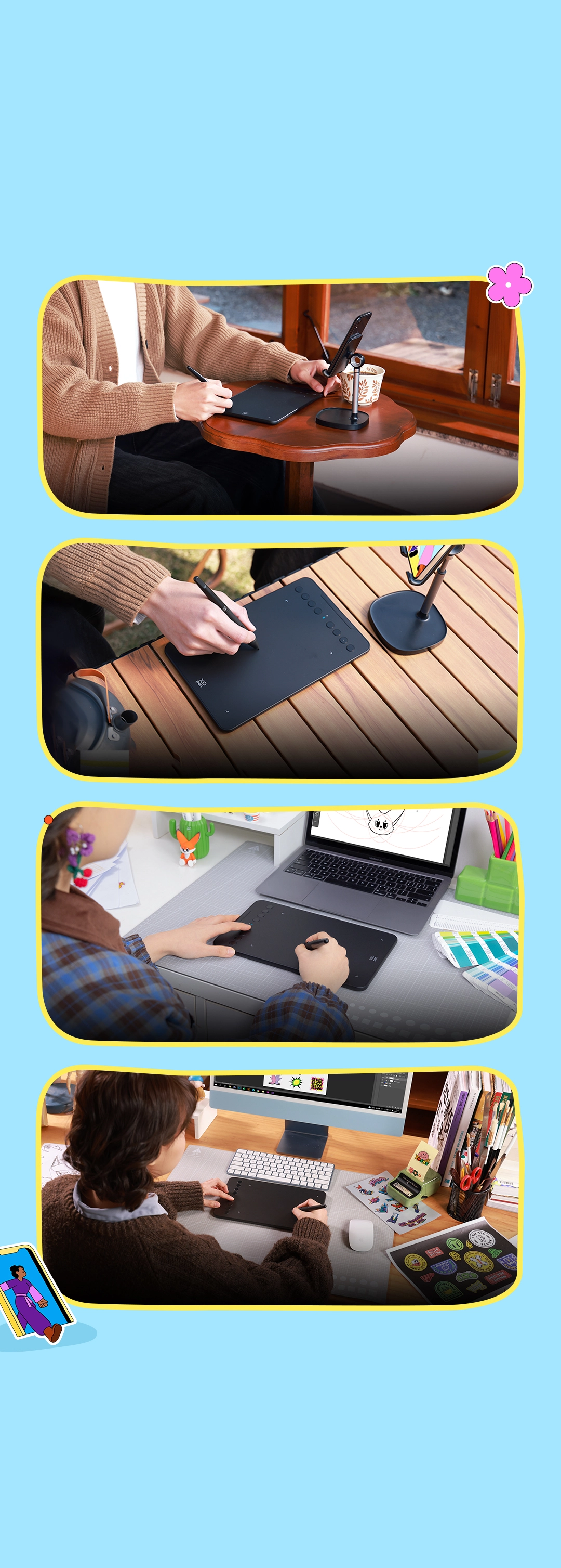 有效減少畫圖變形,創作更輕鬆。另支持手繪板180°旋轉,左右手都能輕鬆使用。