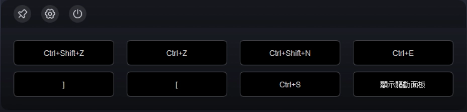 左上角圖示:固定顯示位置、進入驅動程式設定懸浮選單功能、關閉懸浮選單。