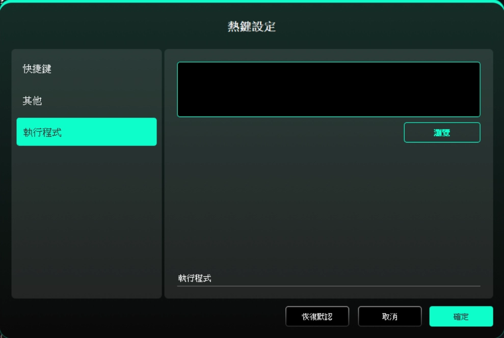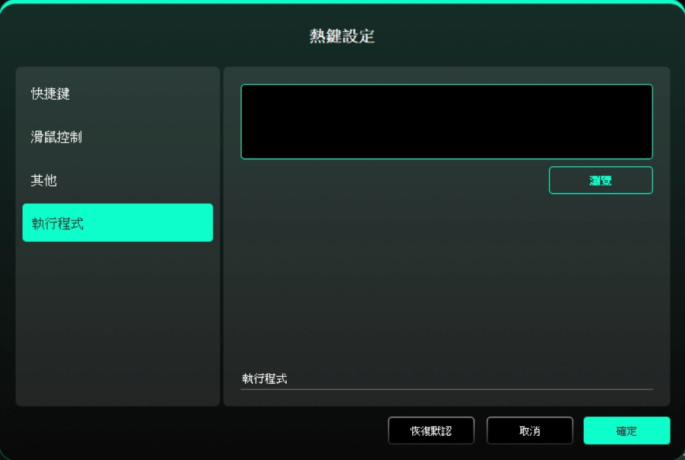 點選懸浮選單中的某個快捷鍵即可設定其功能。您可設定為快捷鍵、其他或執行對應的程式。