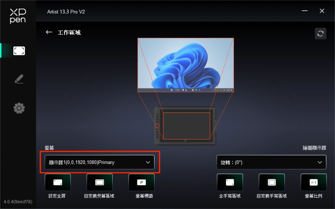 c)熒幕比例:使設備工作區域與已選定顯示器的全部顯示區域比例相同。