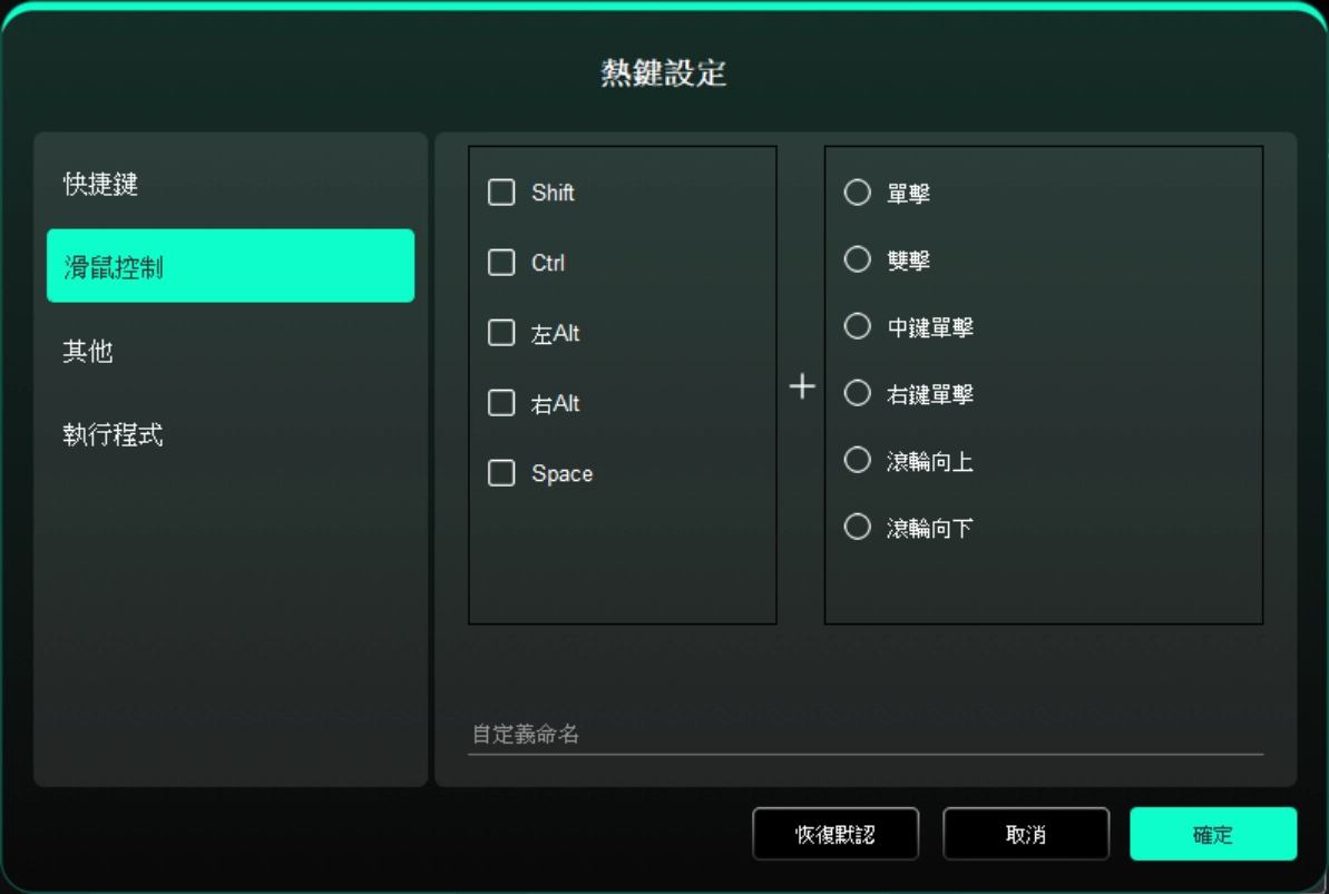 可將當前按鍵設置為除鍵盤快速鍵、滑鼠之外的其他快捷功能: