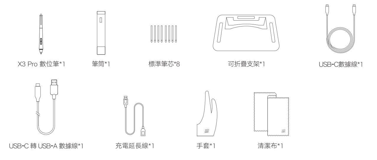 當筆位於感應區域範圍內時,會自動識別不同型號的筆並將其添加到驅動中,所使用的數位筆需與產品兼容。