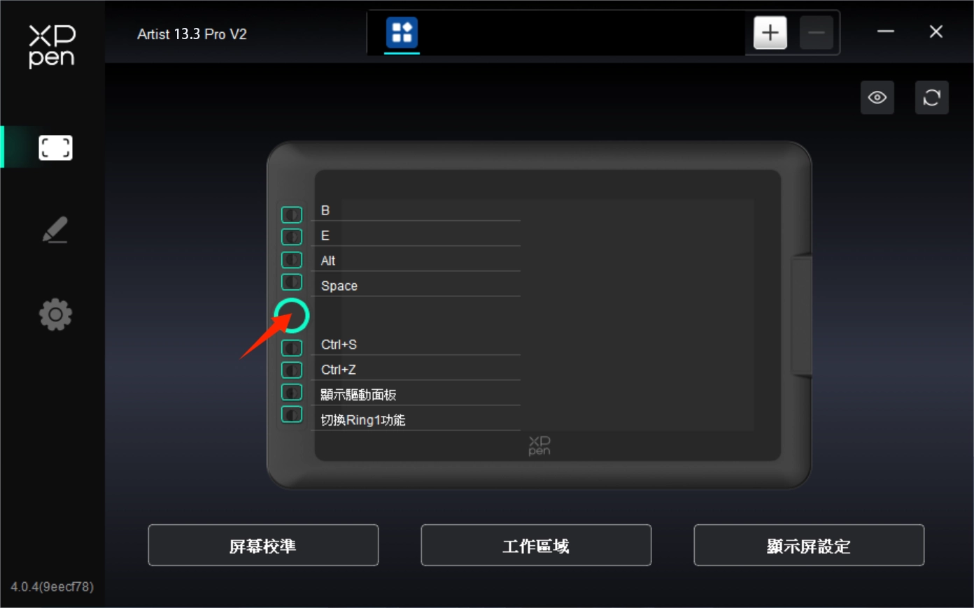 點擊圖上的筆按鍵位置,即可打開熱鍵設置界面,進行自定義功能設置。