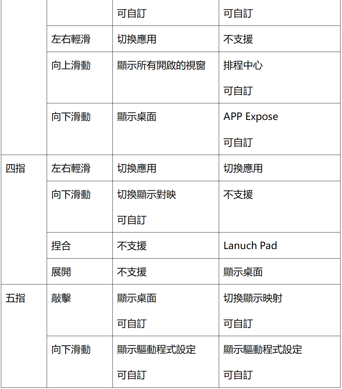 請注意:基於不同作業系統版本的差異,可能無法支援部分系統預設手勢。