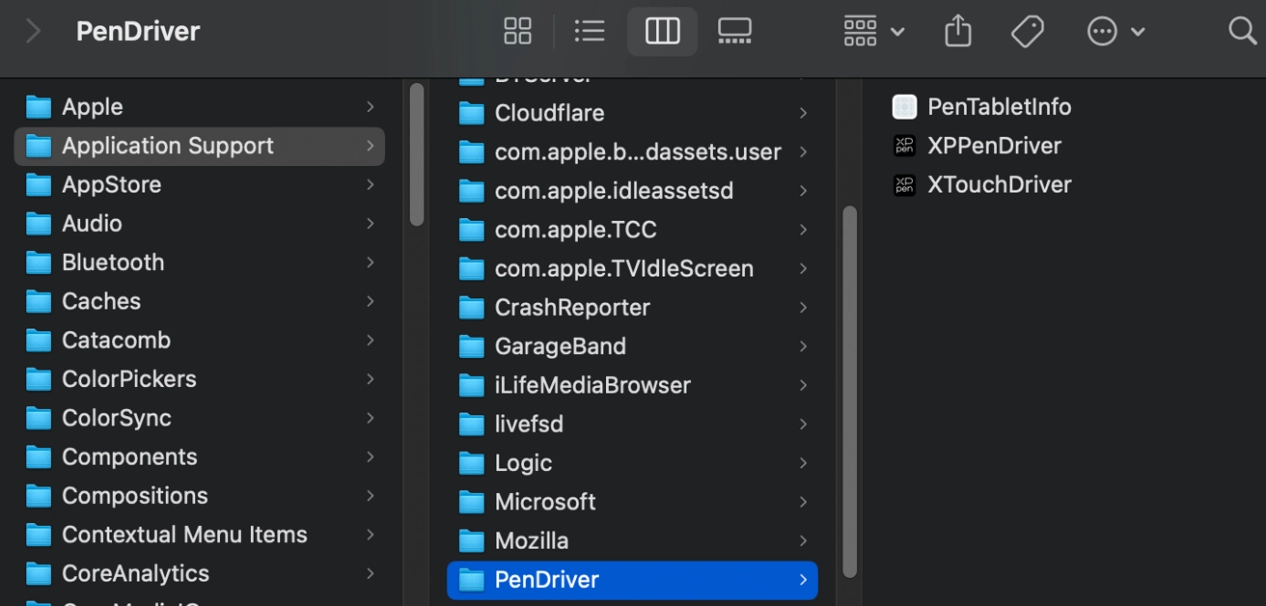 如清單中無相關選項,請前往「資源庫 -> Application Support -> PenDriver」手動新增。
