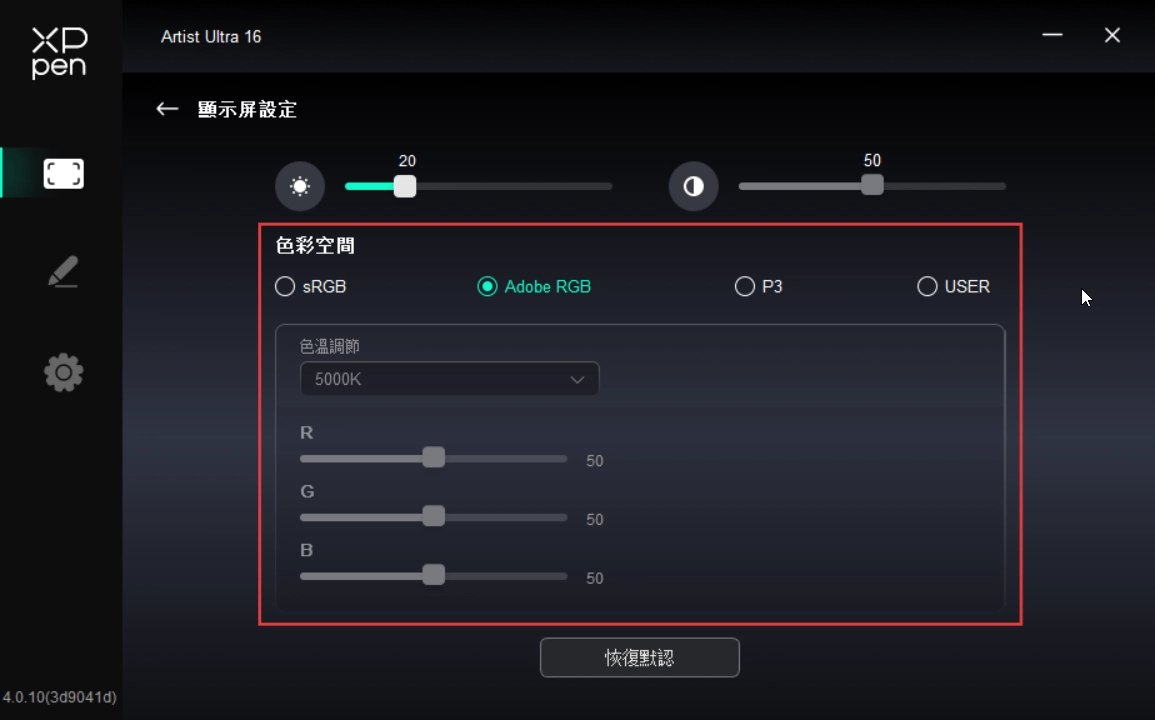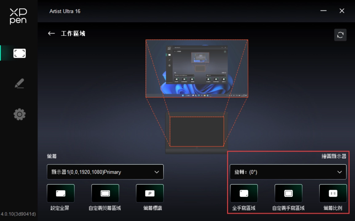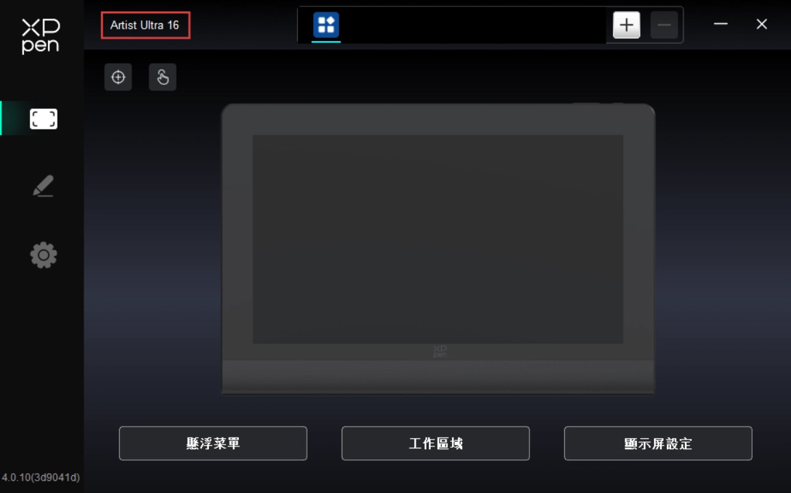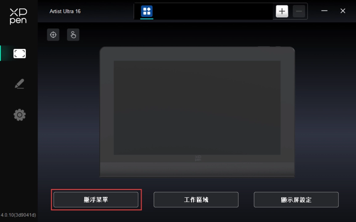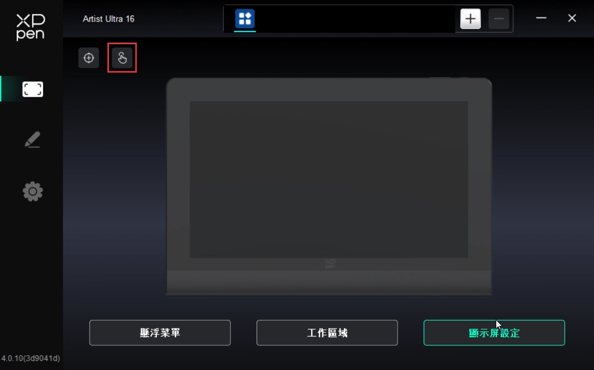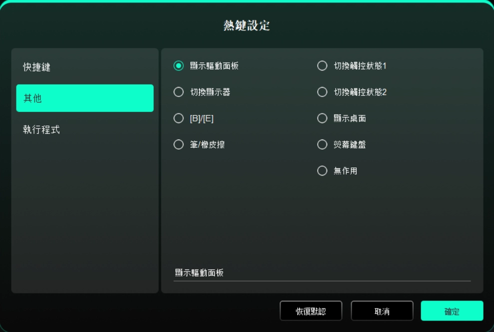點選驅動程式左側圖示,即可切換驅動程式功能,協助設定手繪螢幕相關設定,包括: