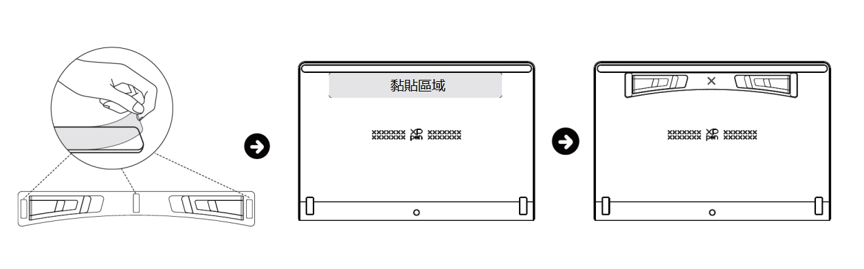2. 對準手繪螢幕背面的黏貼提示框區域,輕輕按壓固定;