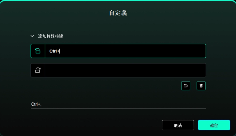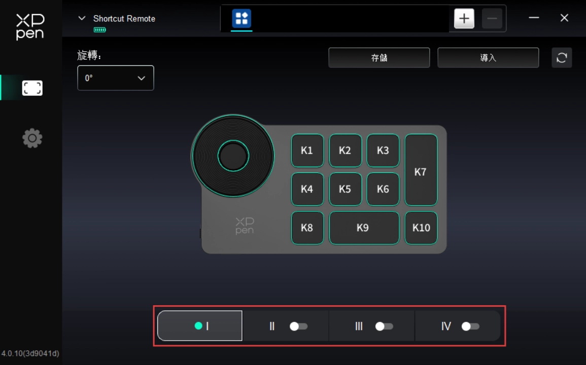 驅動程式提供四個快捷鍵組合,預設使用第一個快捷鍵組合(不可關閉),其他未開啟的按鈕組合預設和第一個相同。每個按鈕組合均可自訂不同的功能,啟用後可透過「切換按鈕組合」(預設為 K1 切換,可自訂其他按鈕組合)輪流切換已開啟的各個按鈕組合。