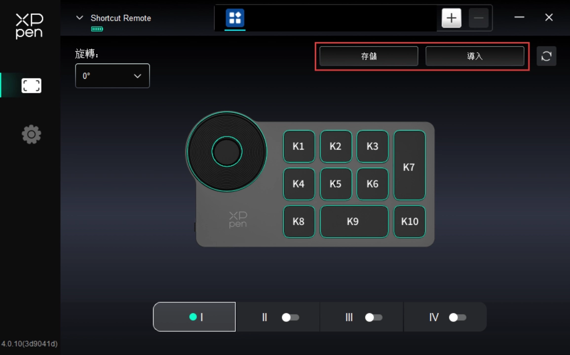 注意:請在有線連接的情況下使用「匯入」和「儲存」功能。「匯入」和「儲存」的配置中不包含旋轉功能,且僅在相同系統下有效。