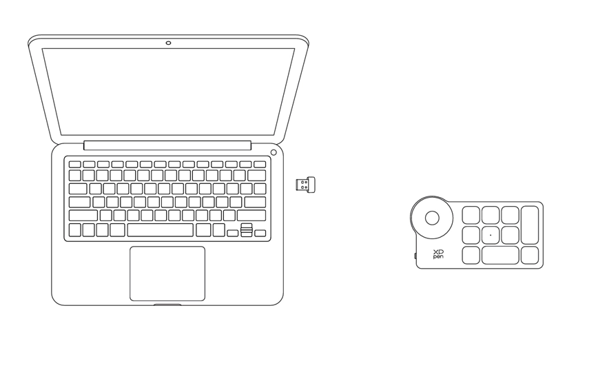 將藍牙接收器插入電腦,撥動無線快捷鍵盤電源開關,指示燈恆亮藍色(恆亮 30 秒後自動熄滅)。