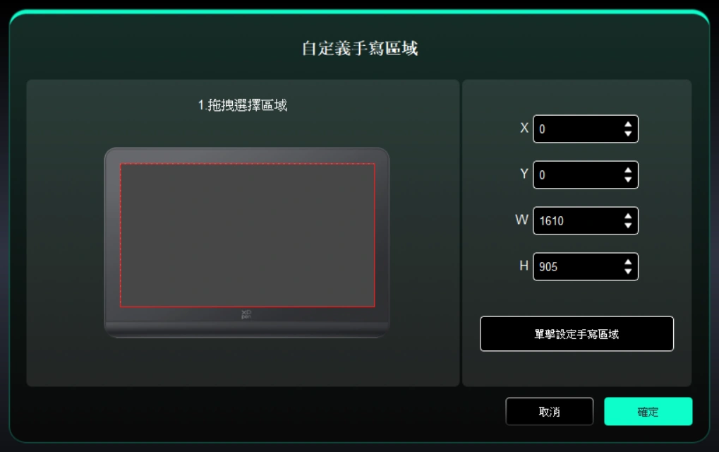 精細模式:讓螢幕的活動區域限制在一定範圍內,可針對區域做更細緻的繪圖。