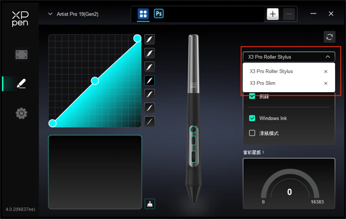 2) 請到 XPPen 官網下載最新驅動安裝並測試筆壓是否正常;