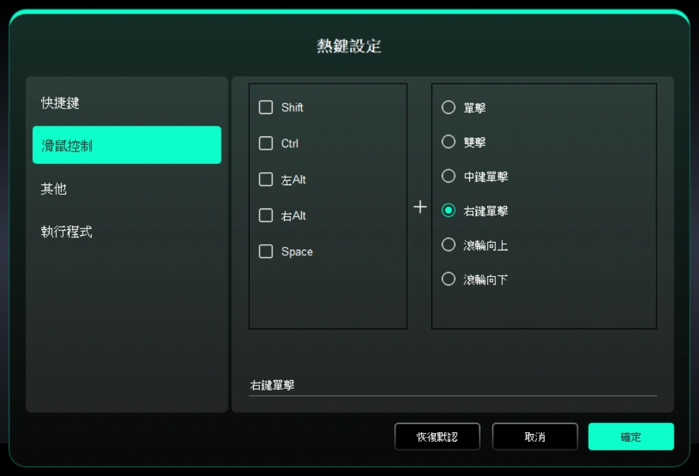 設置滑鼠和鍵盤組合鍵,如選擇“Shift”和“單擊”後,可在支持此組合鍵的軟體中實現此快捷操作。