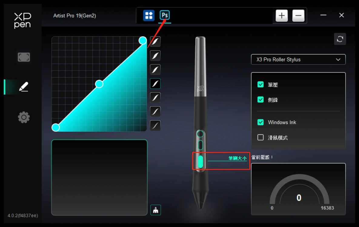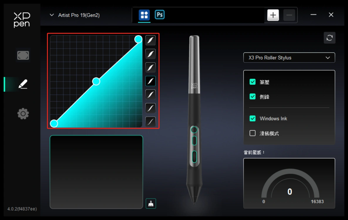 6) 若筆壓測試正常(Windows:在驅動程式筆設置介面,確保Windows ink已開啟);再開啟繪圖軟體測試。