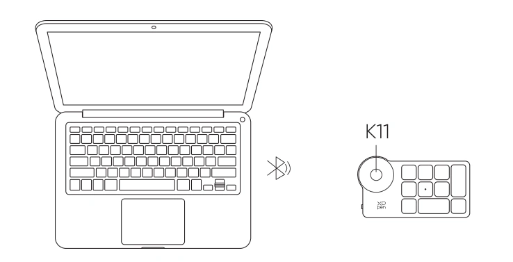 4.3.1撥動無線快捷鍵盤電源開關,無線快捷鍵盤指示燈藍色慢閃,長按K11鍵6秒進入配對狀態,指示燈藍色快閃;