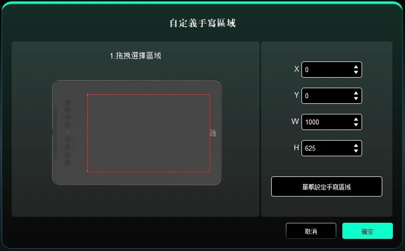 單擊設定手寫區域:單擊後,用繪圖筆在設備工作區域上點擊要選取的“左上角”位置和“右下角”位置。
