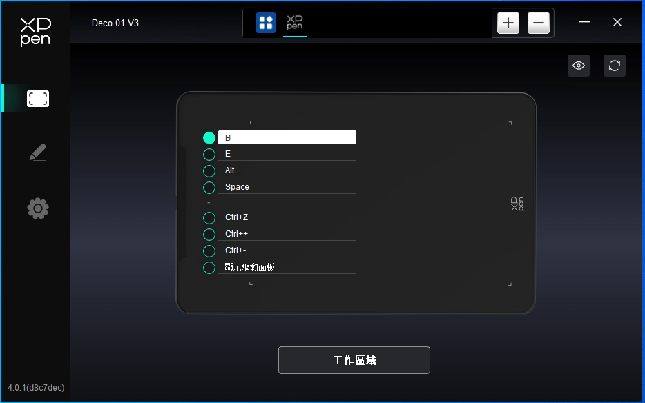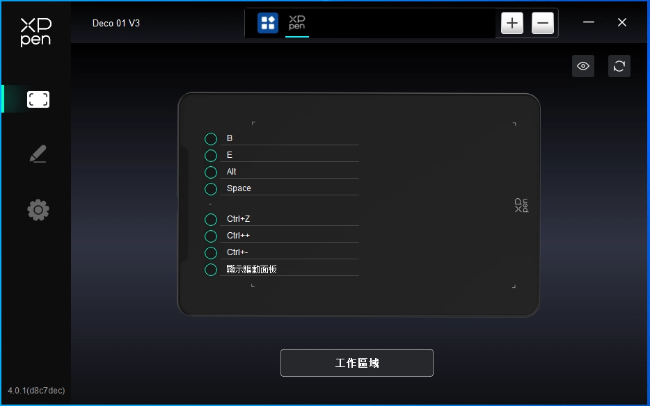 工作區域可以幫助您定義設備工作區域和螢幕顯示區域的映射關係。