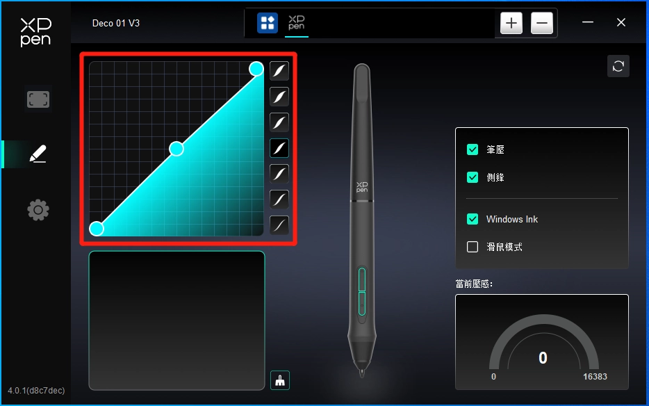 6)若筆壓測試正常(Windows:在驅動程式筆設定介面,確保Windows ink已開啟);再開啟繪圖軟體測試。
