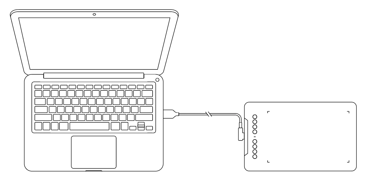 請將USB-C to USB-A連接線,分別連接至電腦端的USB介面和繪圖板端的USB-C介面。